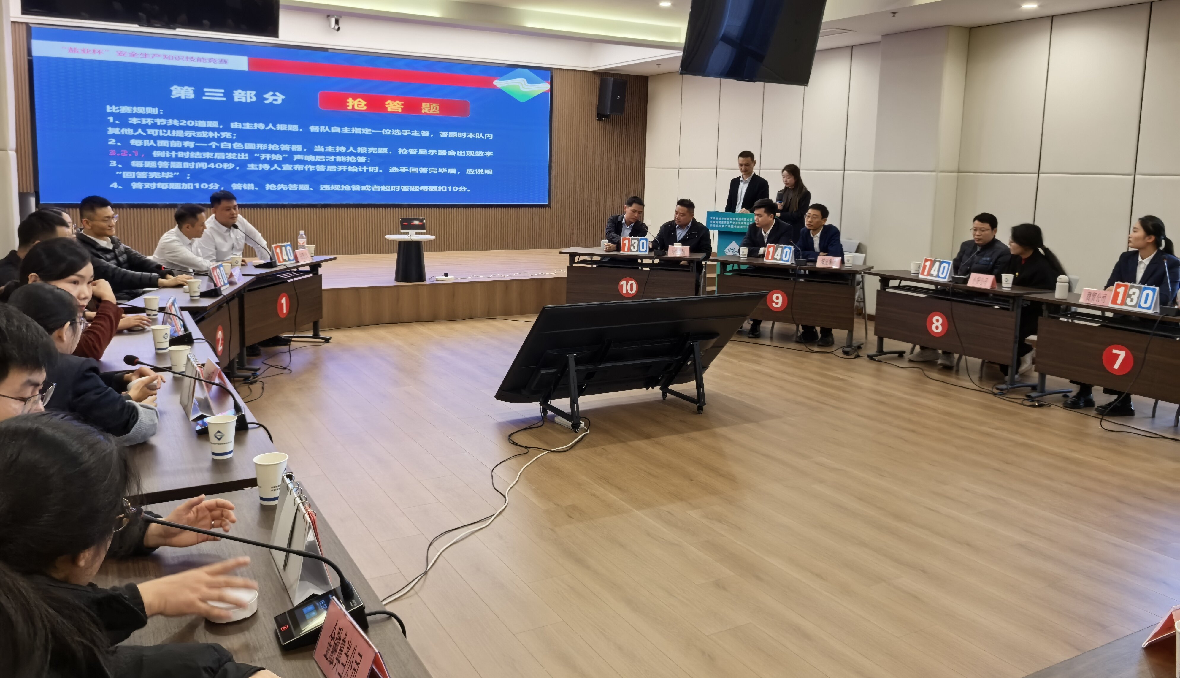 本次競賽以“人人講安全,個個會應急——查找身邊安全隱患”為主題,聚焦政策法規(guī)和實踐操作,旨在全面提升干部職工對危險、有害因素的辨識能力與應急處置技能,堅決防范生產(chǎn)安全事故發(fā)生。經(jīng)過前期籌備,來自集團所屬企業(yè)的10支代表隊同臺競技,各代表隊冷靜答題、奮勇爭先。“各顯身手”個人必答和“齊心協(xié)力”團隊必答環(huán)節(jié)穩(wěn)扎穩(wěn)打,展現(xiàn)扎實知識儲備;“爭分奪秒”搶答環(huán)節(jié)分秒必爭,考驗快速反應能力;“勇攀高峰”風險環(huán)節(jié)深入分析,實現(xiàn)理論實踐深度融合。尤其在風險題環(huán)節(jié),選手們根據(jù)實際案例查風險、找隱患,展現(xiàn)了對政策法規(guī)知識的準確理解和解決實際問題的良好能力。