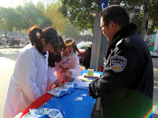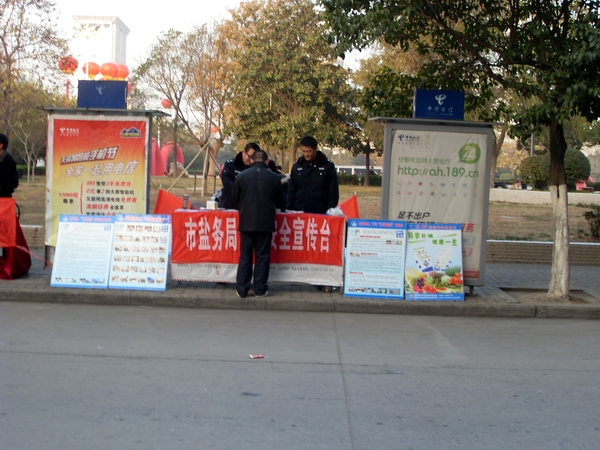 在本次活動(dòng)中,阜陽(yáng)市局設(shè)立宣傳咨詢臺(tái),宣傳展架4個(gè),擺放精心準(zhǔn)備的宣傳資料和傳單,展示近期在市場(chǎng)查獲得各類假冒鹽品,現(xiàn)場(chǎng)接受市民咨詢散發(fā)宣傳單300余份,向群眾宣傳普及鹽業(yè)法規(guī),并推出了現(xiàn)場(chǎng)教市民辨別真假碘鹽的活動(dòng),咨詢臺(tái)前觀看宣傳圖版和前來(lái)咨詢的群眾絡(luò)繹不絕,廣大市民對(duì)國(guó)家為確保民生,食鹽專營(yíng)的政策深表理解和支持。市領(lǐng)導(dǎo)對(duì)宣傳點(diǎn)進(jìn)行慰問(wèn)檢查時(shí),對(duì)阜陽(yáng)市的鹽政管理給予了充分肯定和認(rèn)可,并鼓勵(lì)大家再接再厲再創(chuàng)佳績(jī)。