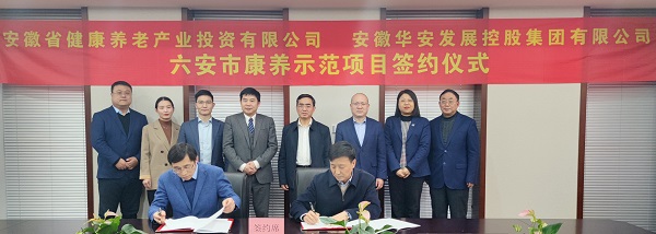 2月22日,安徽省健康養老產業投資有限公司與安徽華安發展控股集團有限公司簽署六安市康養示范項目合作協議。省鹽業集團黨委副書記、總經理、董事,省健康養老產業投資有限公司黨委書記、董事長王思軍,安徽華安發展控股集團董事長張懷安出席簽約儀式。省健康養老產業投資有限公司負責人吳小平、安徽華安發展控股集團副董事長程鈺分別代表雙方簽署合作協議。